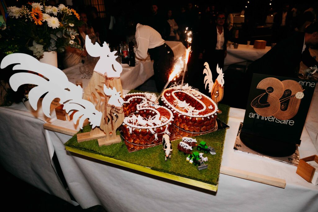 3 jours de montage, dans un lieu féérique, niché en plein cœur d’un parc naturel, bordé d’un étang. Le lieu idéal pour accueillir nos 300 invités afin de leur faire vivre une soirée étoilée généreuse, chic et rythmée par de nombreuses surprises. Bar à Vinyles, fresque artistique, Blind test musical, panneaux rétrospective, Photo call et voitures de collection, Birthday cake et macarons au logo du client, scène conçue spécialement pour l’événement, et enfin spectacle narratif immersif pour revivre 30 ans d’innovation.